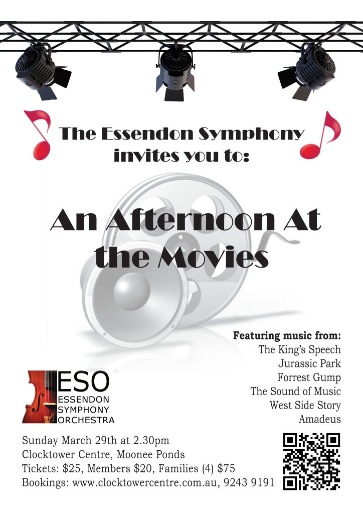 This concert will also be the last Essendon Symphony Orchestra concert conducted by Jenny Going, our Artistic Director of nearly 20 years! Please join us for all the movie magic, and to celebrate Jenny and her years of service to our local community orchestra.